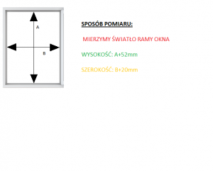 Do zamówienia mierzymy światło ramy okna i dodajemy do zmierzonej wysokości 52 mm (czyli podwójną szerokość profilu ramki), a do szerokości – 20 mm co daje nam przestrzeń na montaż wieszaków hakowych.